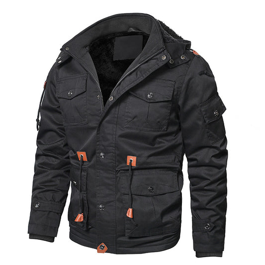 Dicke Winterjacke für Herren|Arbeitsmantel mit abnehmbarer Kapuze