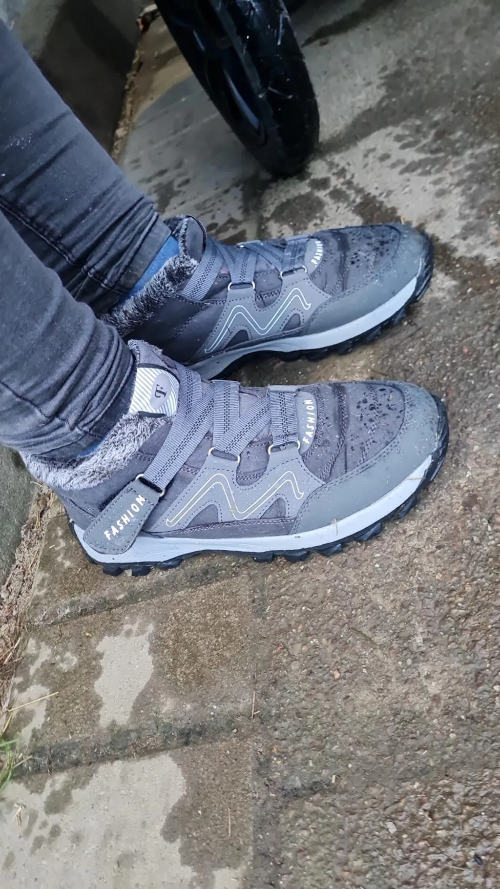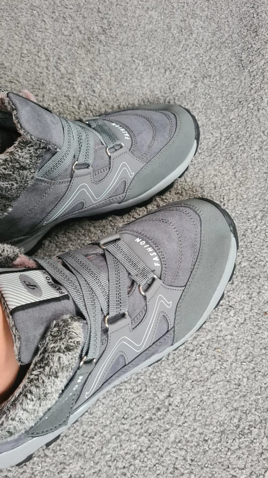 Die Schuhe sind sehr bequem und auch angenehm warm. Auch im Sitzen bleiben die F?e angenehm warm.Der verschluss ist auch angenehm und die Schuhe sehen auch gut zur Jeans aus.