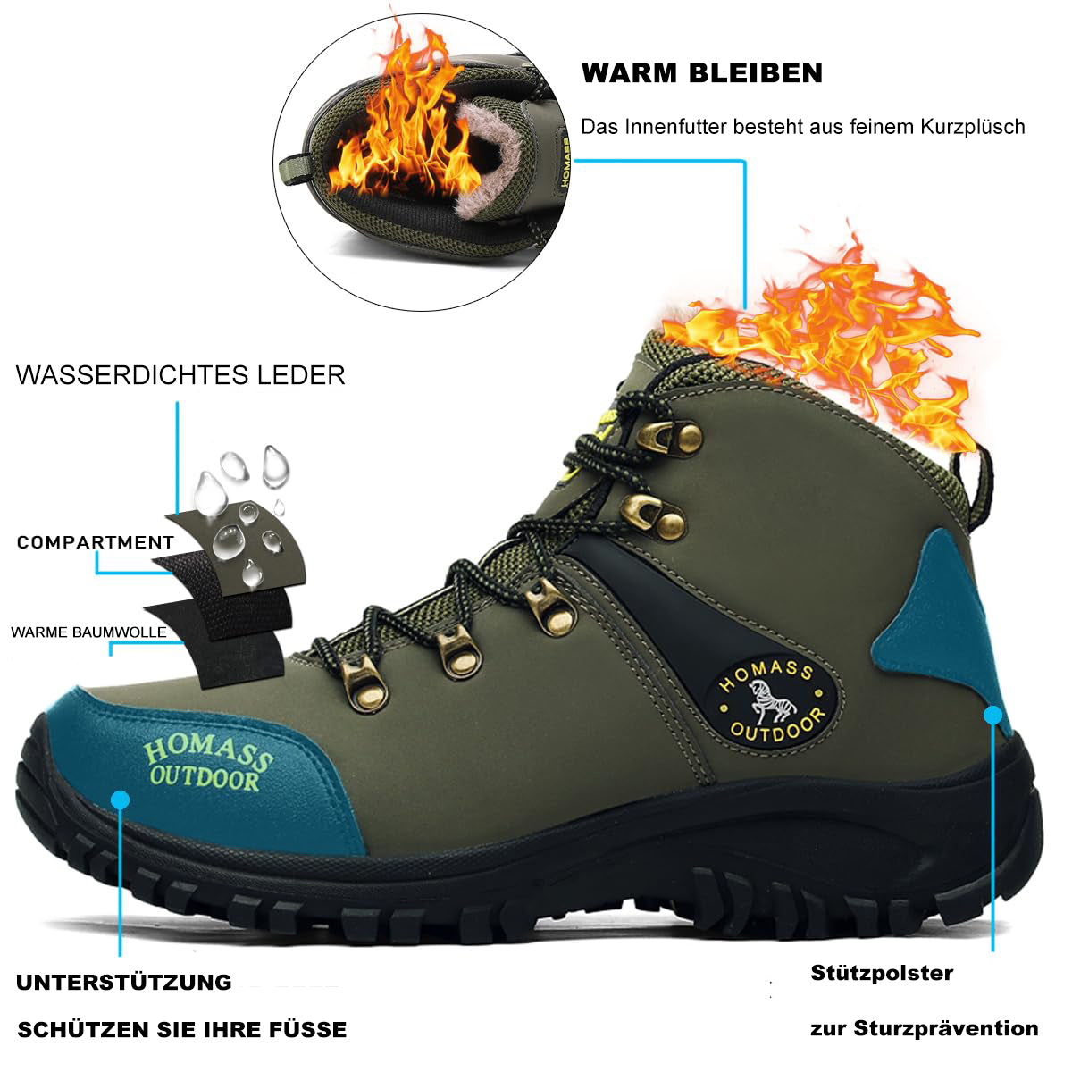 Die wasserdichte, atmungsaktive und nahtversiegelte Membran-Konstruktion hält Ihre Füße kühl und trocken. Mit kratzfesten Gummiabsätzen, robusten Outdoor-Befestigungen und Knöchelunterstützung bieten diese Wanderschuhe für Männer überlegenen Schutz und Stabilität.
