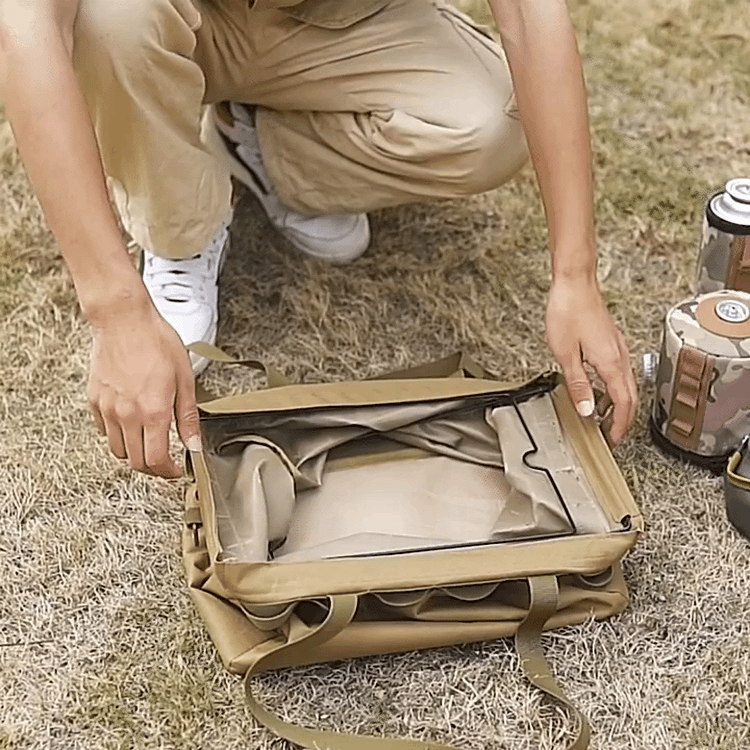 Mit einem großen Fassungsvermögen von 29 Litern und 20 Aufbewahrungsgurten bietet die Tasche Platz für Ihre Camping-Nahrungsmittel, Getränke und Werkzeuge. Die großen Nylon-Griffe erleichtern das Tragen, und das leichte Gewicht sorgt für einfachen Transport.