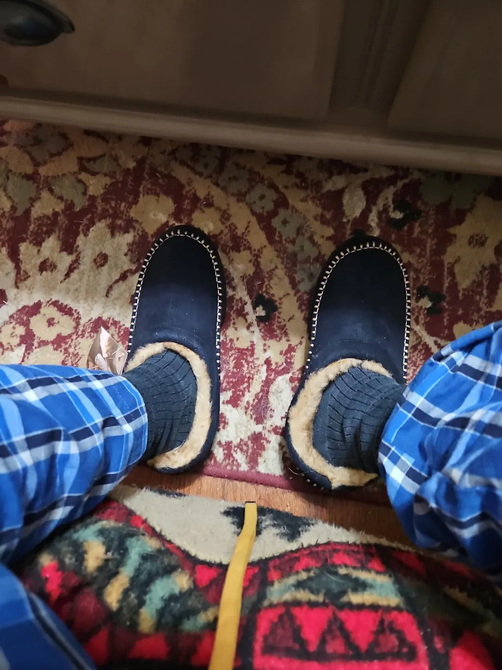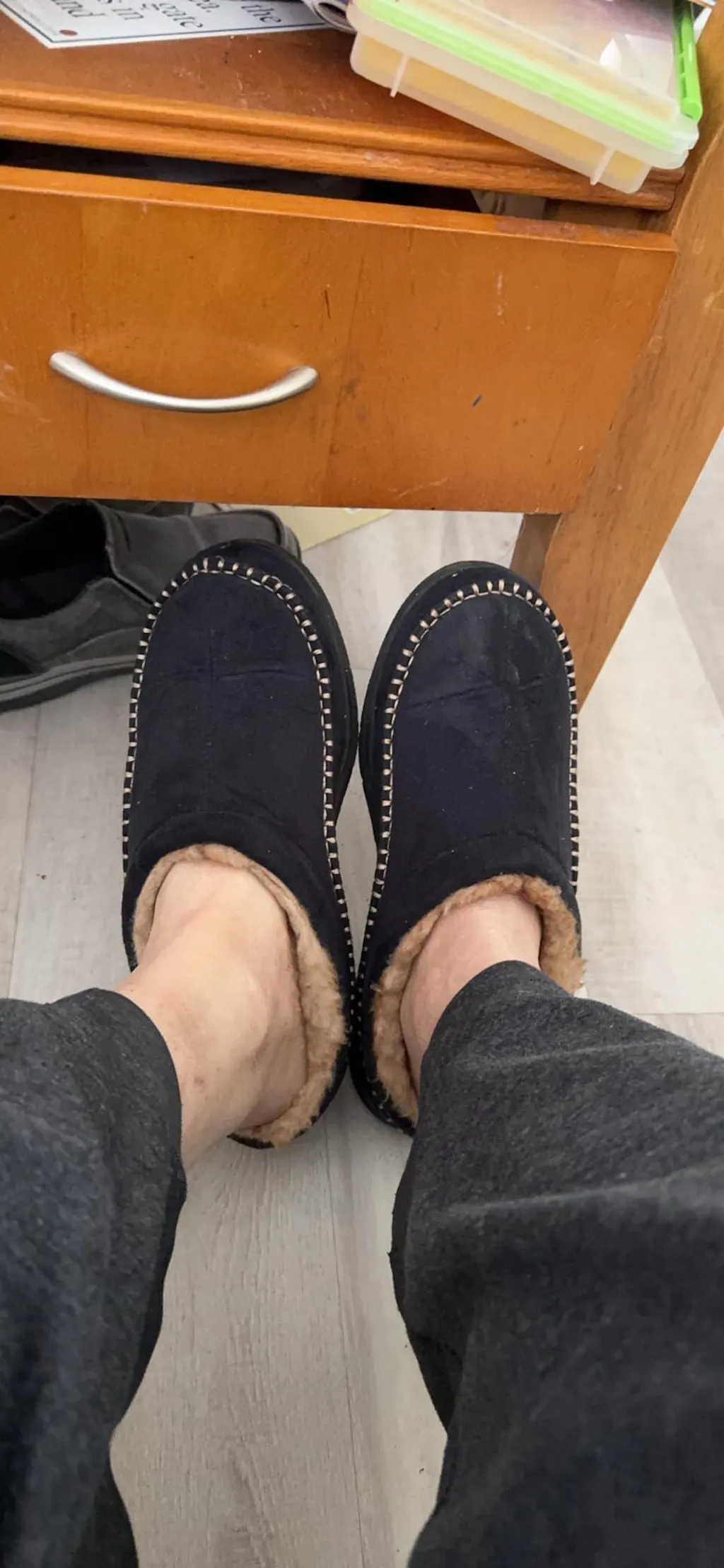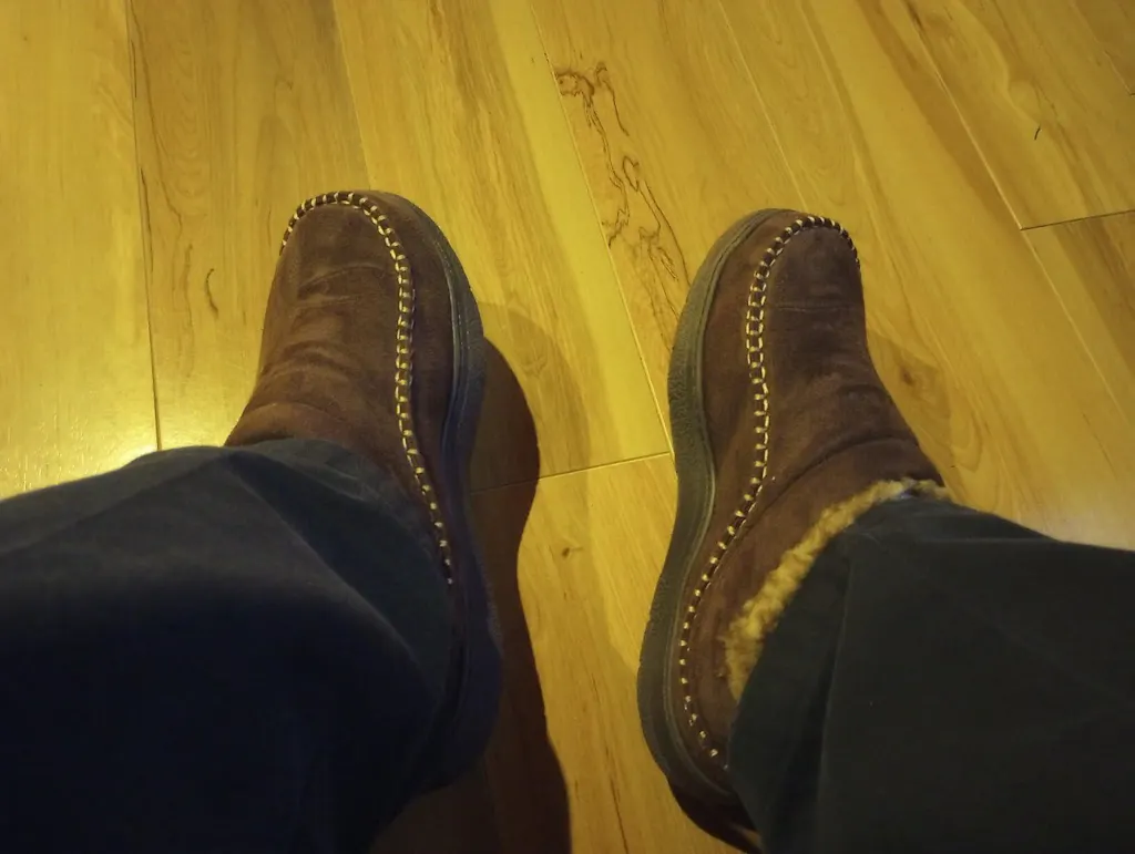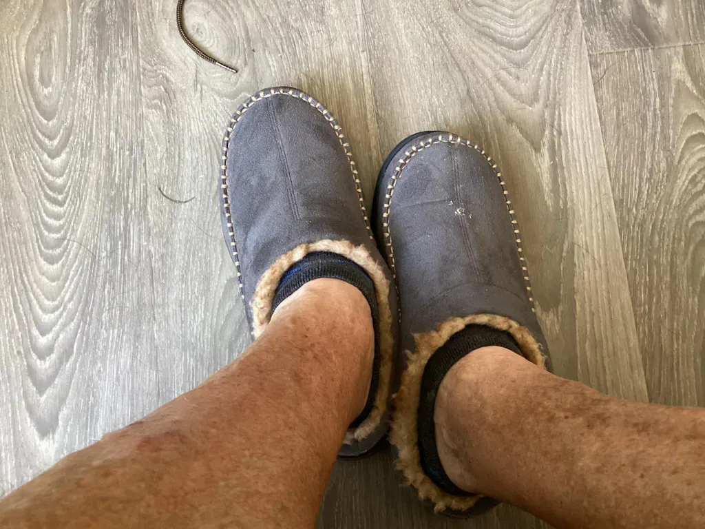 Es sind Hausschuhe für kaltes Wetter.