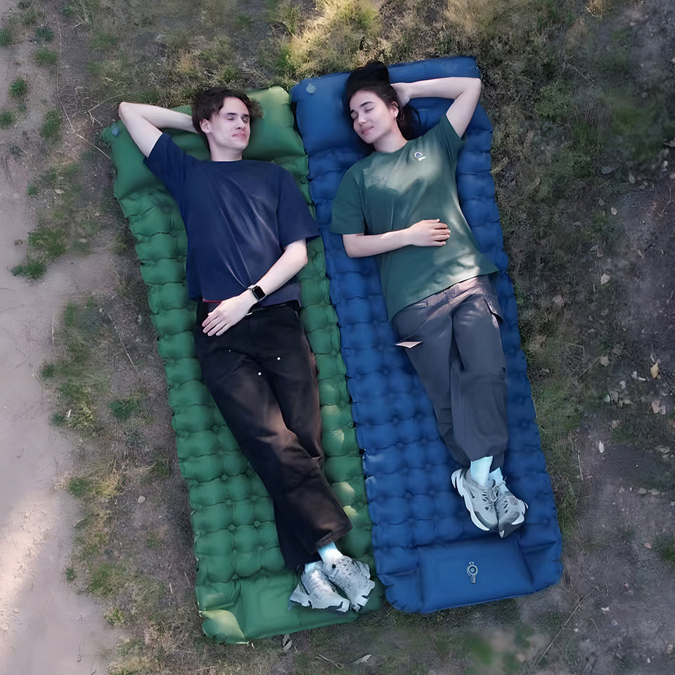 Mit einer Dicke von 10 cm und einem integrierten 16 cm Kopfkissen bietet diese Isomatte ein außergewöhnlich bequemes Schlaferlebnis – selbst auf kaltem, unebenem oder feuchtem Boden.