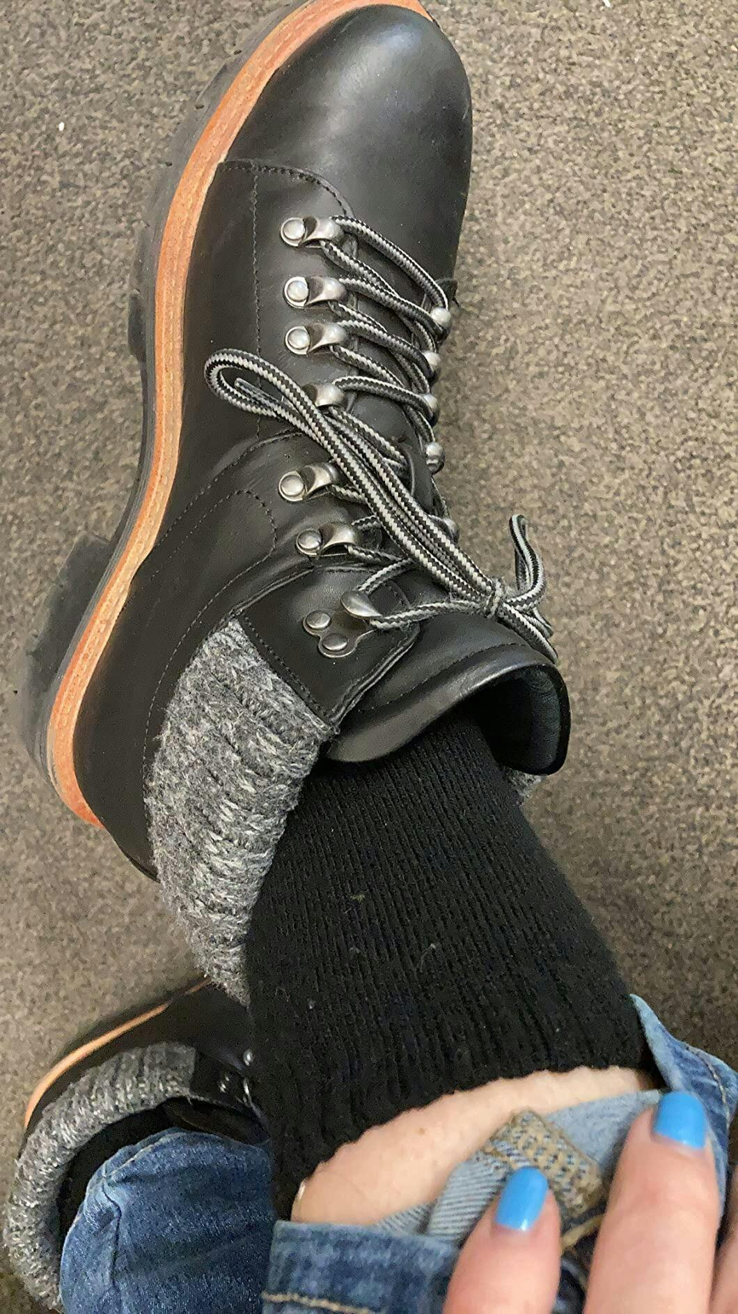 Wenn du Wollsocken wolltest, aber nicht die hohen Preise vieler Marken zahlen möchtest, sind diese hier perfekt! Sie bestehen aus einer Materialmischung, aber der Wollanteil ist hoch genug, um die Füße warm zu halten und antibakteriell zu wirken. Man kann sie sogar mehrmals tragen, bevor man sie waschen muss, weil die Wolle Gerüche neutralisiert!