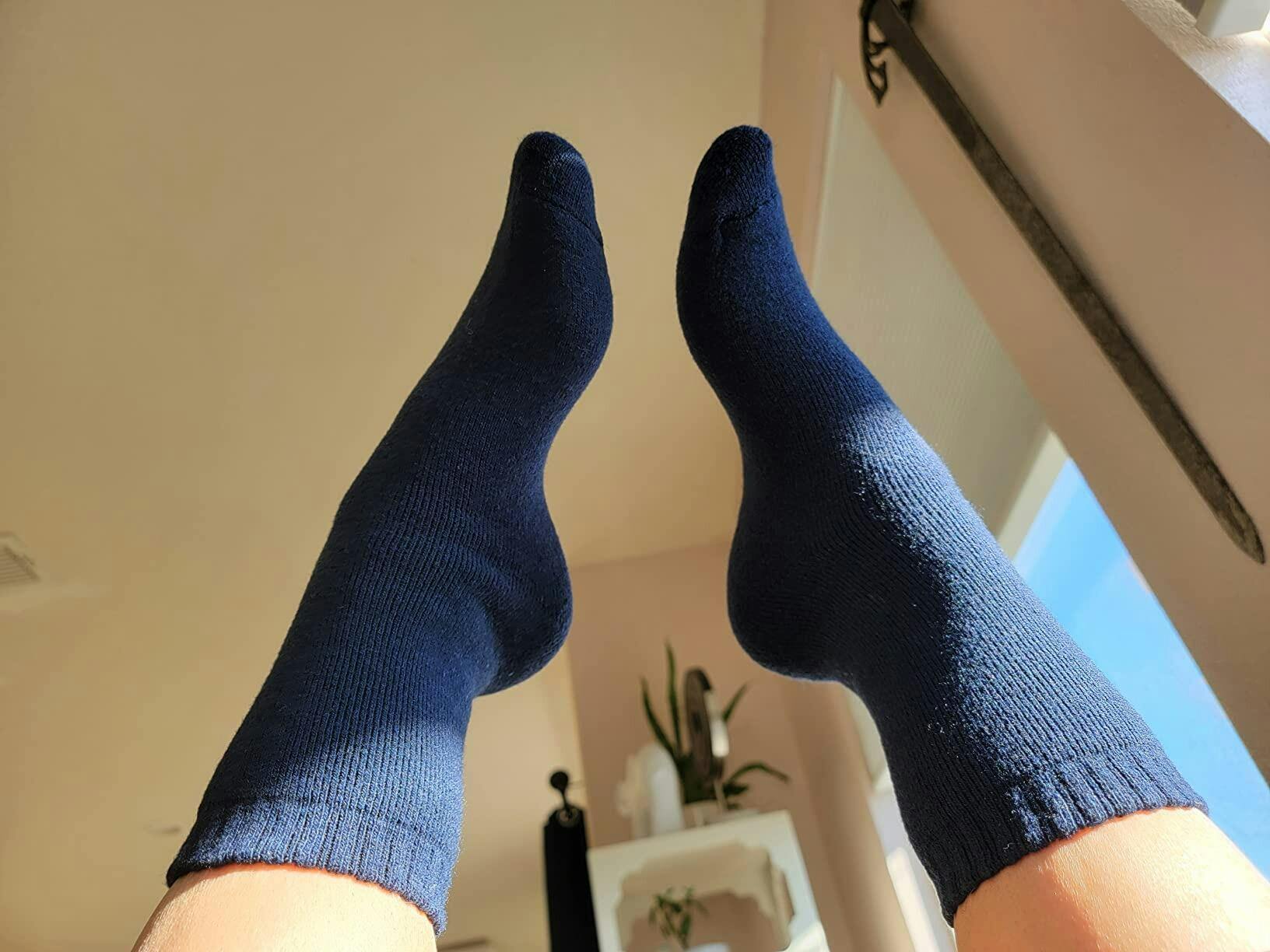 Ich habe diese Socken ausprobiert, weil mir normale Baumwollsocken bei meinen ständig kalten Füßen überhaupt nicht geholfen haben! Im Winter habe ich wirklich große Schwierigkeiten, meine Füße warm zu halten. Diese Socken sind so warm und bequem.