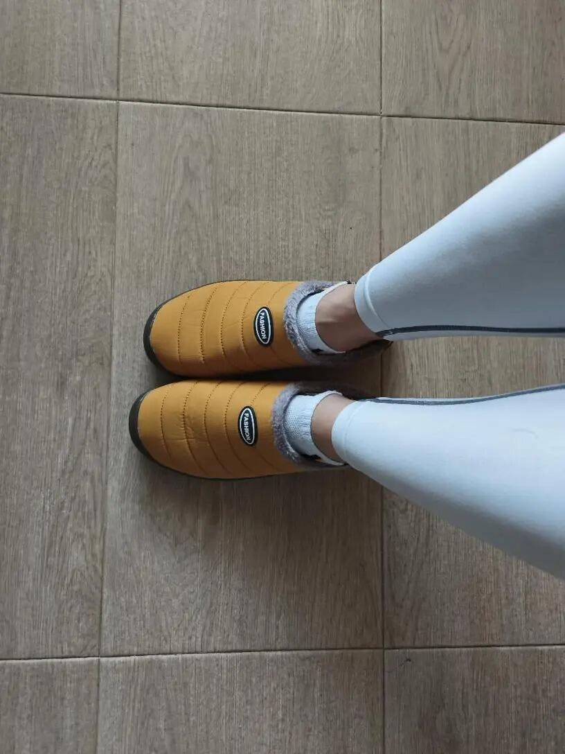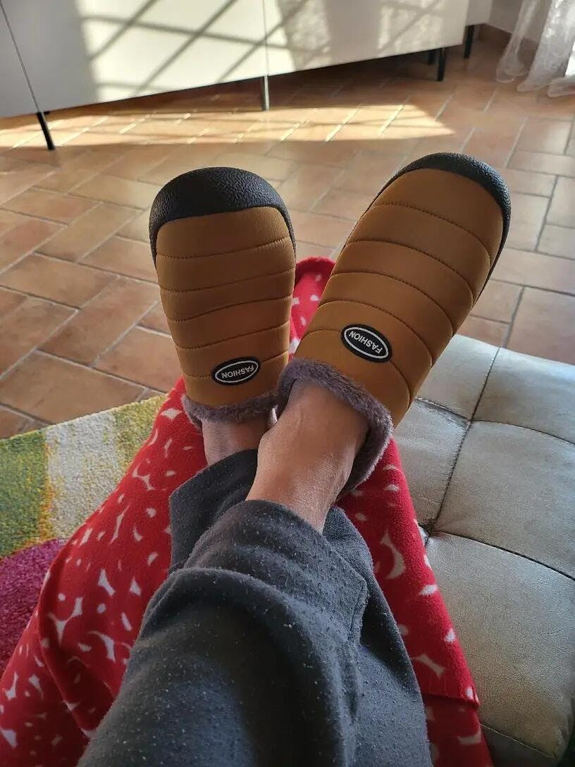 Ich habe neue Hausschuhe gesucht, die meine Füße im Winter warmhalten und trotzdem genug Platz lassen, da ich gerne Wollsocken trage. Normalerweise habe ich Schuhgröße 43, bestellt habe ich Größe 44 – und die passen wirklich gut. Egal ob mit dickeren Socken oder ohne, sie sitzen bequem.