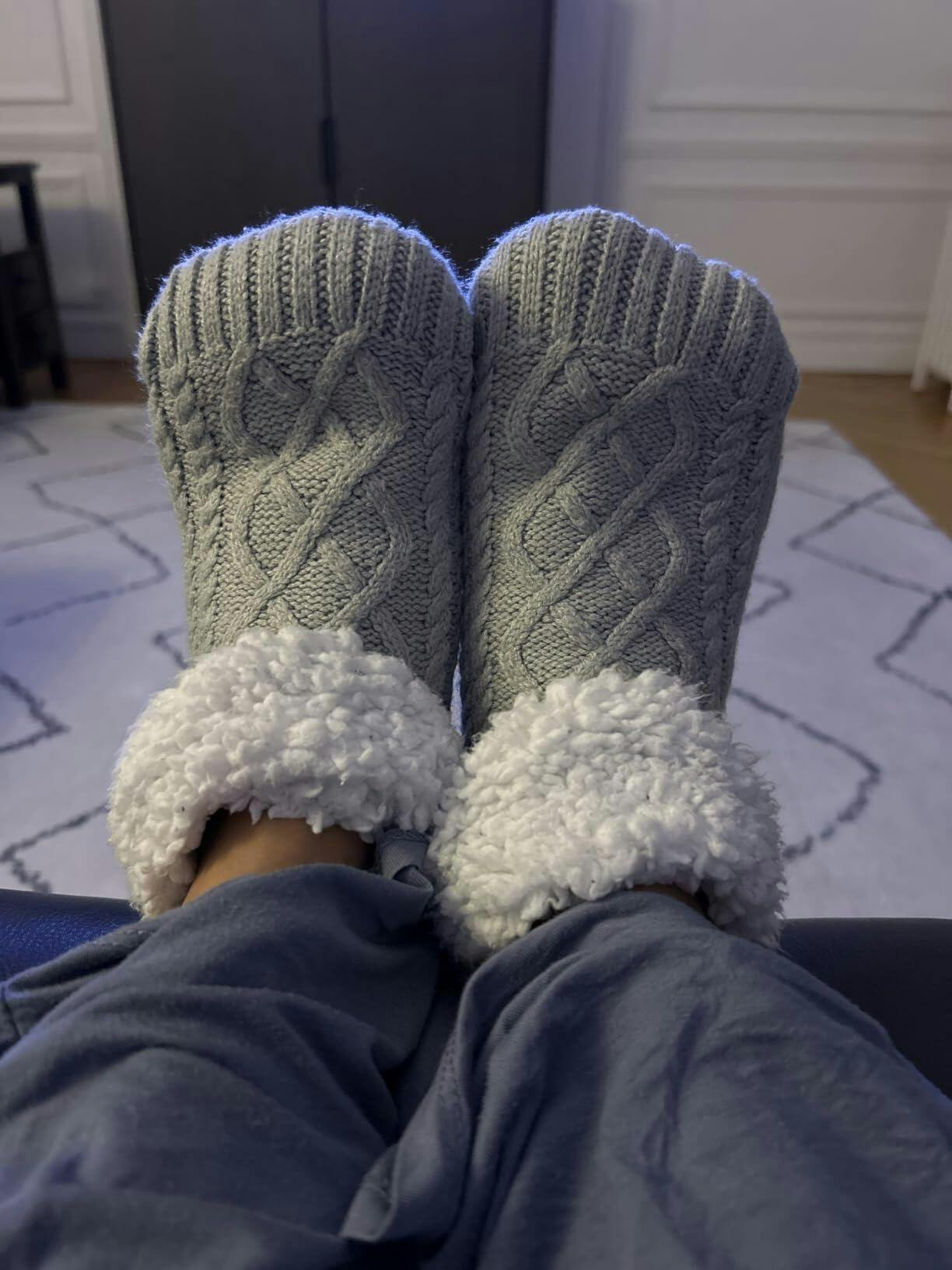 Diese Socken sind perfekt für die Winterzeit. Sie haben eine kuschelige Optik und sind relativ qualitativ. Sie haben Noppen an der Unterseite gegen das Ausrutschen. Insgesamt kann ich sie empfehlen.