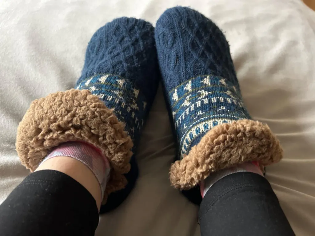 Diese Hausschuhsocken sind einfach großartig – ideal für kalte Morgen oder gemütliche Tage zu Hause.