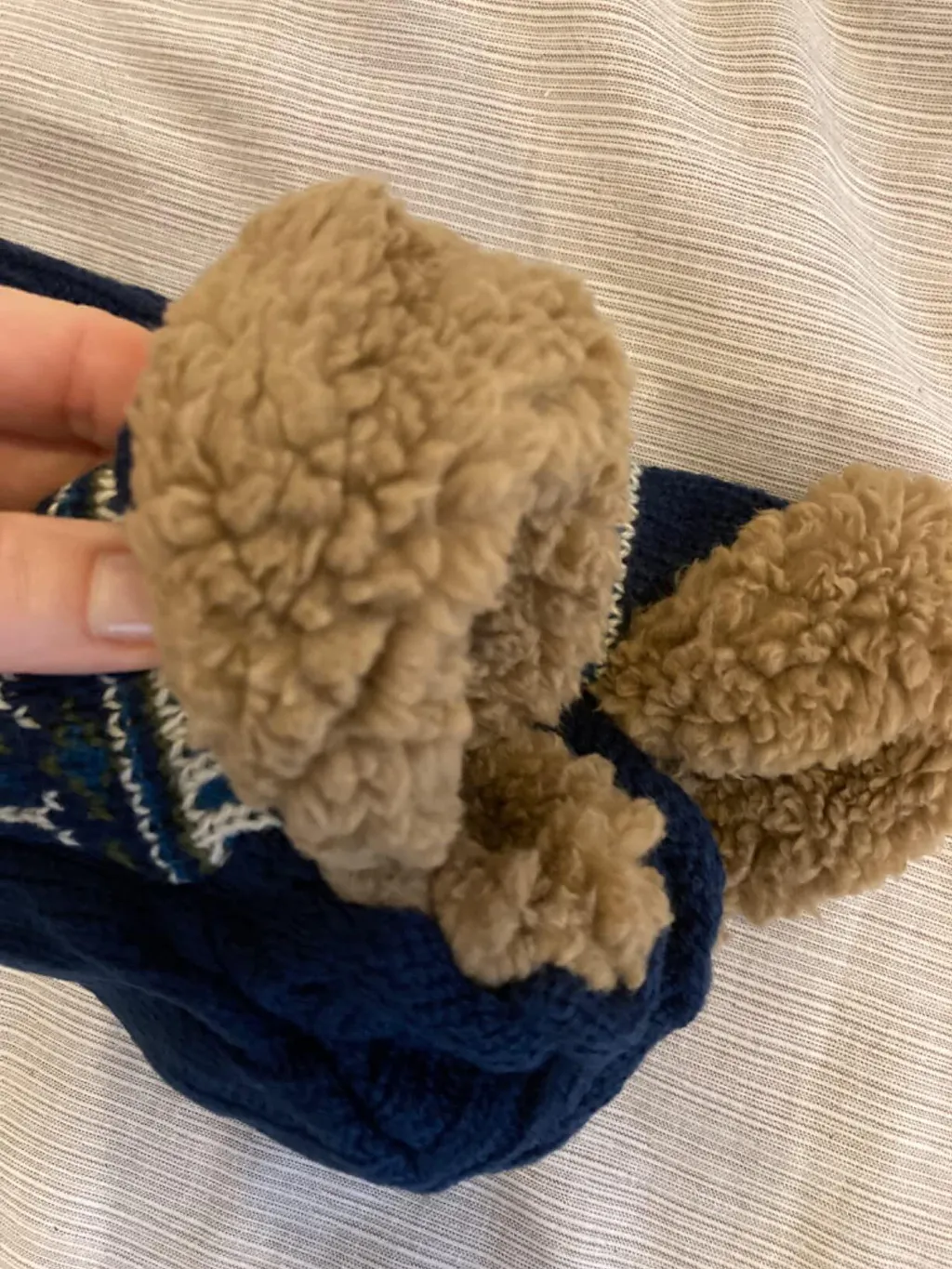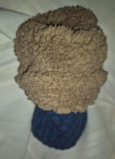 Das dunkelblaue Strickdesign sieht wunderschön aus und bildet einen tollen Kontrast zum Fleece.
